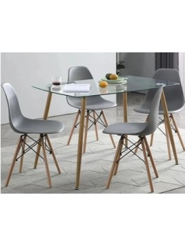 Estructura:  Sillas en Polipropileno Estructura Base de la mesa  : Patas de metal, pintado al horno color madera para mas resistencia Vidrio : 8 mm Medidas  silla: Alto: 81 cm Ancho: 46.5 cm Profundidad: 44 cm Tablero: Vidrio  Tiempo de producción y entrega: 3 días hábiles....