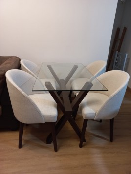 Ficha técnica del Juego de Muebles: Estructura: Madera 100% tornillo. Tapiz: Katar Relleno Interno: Panel de Espuma Zebra marca Paraíso + Napa siliconeada Densidad de espuma: 25 kg/m3 Grosor de espuma: 5 pulgadas Suspensión: Panel de resortes internos de 4 sillas por asiento...