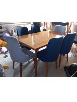 Estructura: Madera 100% tornillo. Tablero: Madera tornillo Tapiz: vasco Relleno Interno silla: Panel de Espuma Zebra marca Paraíso  Grosor de espuma: 5 pulgadas Material de las Patas: Madera tornillo  Tiempo de producción y entrega: 6 días hábiles. Garantía 12 meses.