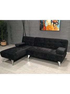 Sofá cama longue Terciopelo - Negro