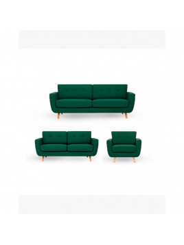 Renueva tu sala con el elegante juego de sala Florencia 3+2+1 con 6 cojines decorativos en tela del mismo color del mueble, disponible con la marca LMUEBLE.