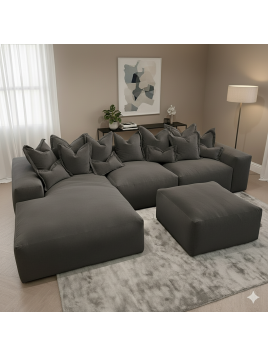 Ficha técnica del Seccional Estructura: Madera 100% tornillo. Tapiz: Tela chenille Relleno Interno: Panel de Espuma Zebra marca Paraíso + Napa siliconeada Densidad de espuma: 25 kg/m3 Grosor de espuma: 5 pulgadas Suspensión: Panel de resortes internos de 4 sillas por asiento asientos...