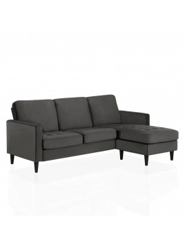 Sofa lineal marrou en tapiz chenille con pata de madera tornillo