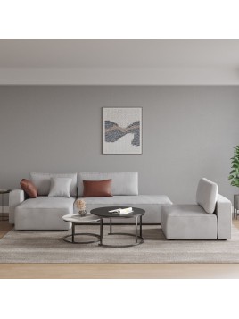 Especificaciones principales Estructura / Armazón: Madera tornillo 100% certificada Tapiz: Tela chenille antifluido y petfriendly Medidas: 280 cm largo x 180 cm parte L Configuración: Seccional modular de 4 piezas adaptable a tu sala Material de patas: Madera tornillo 100%...