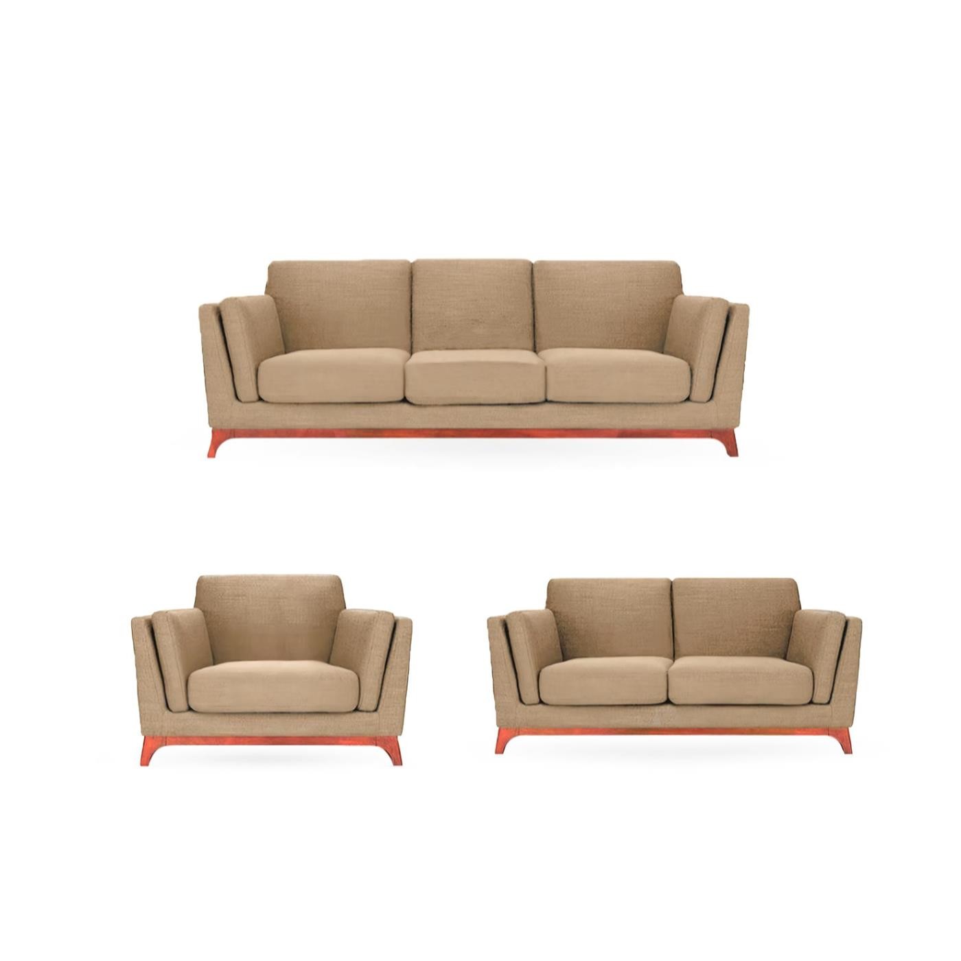 Juego de Sala Estefany 3-2-1 Tela Lino Antifluido con Base de Zócalo Color Beige