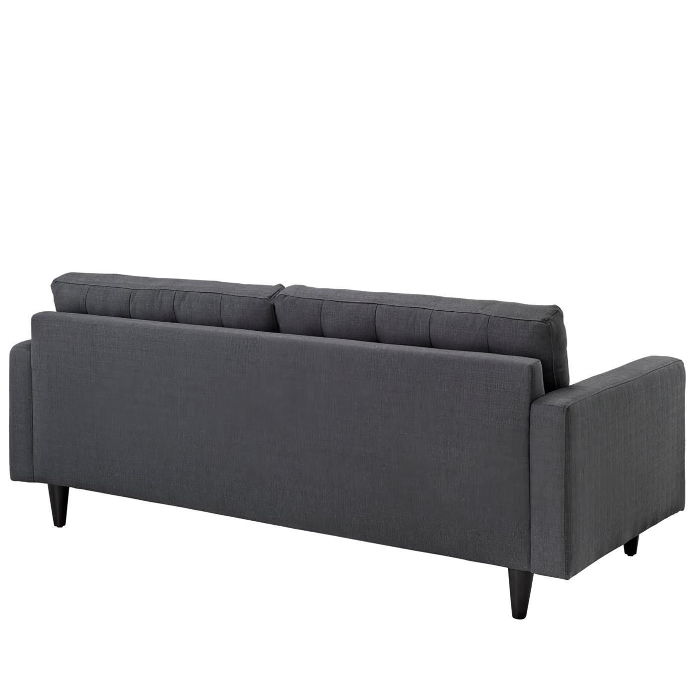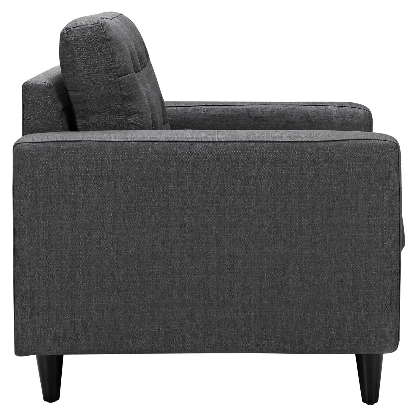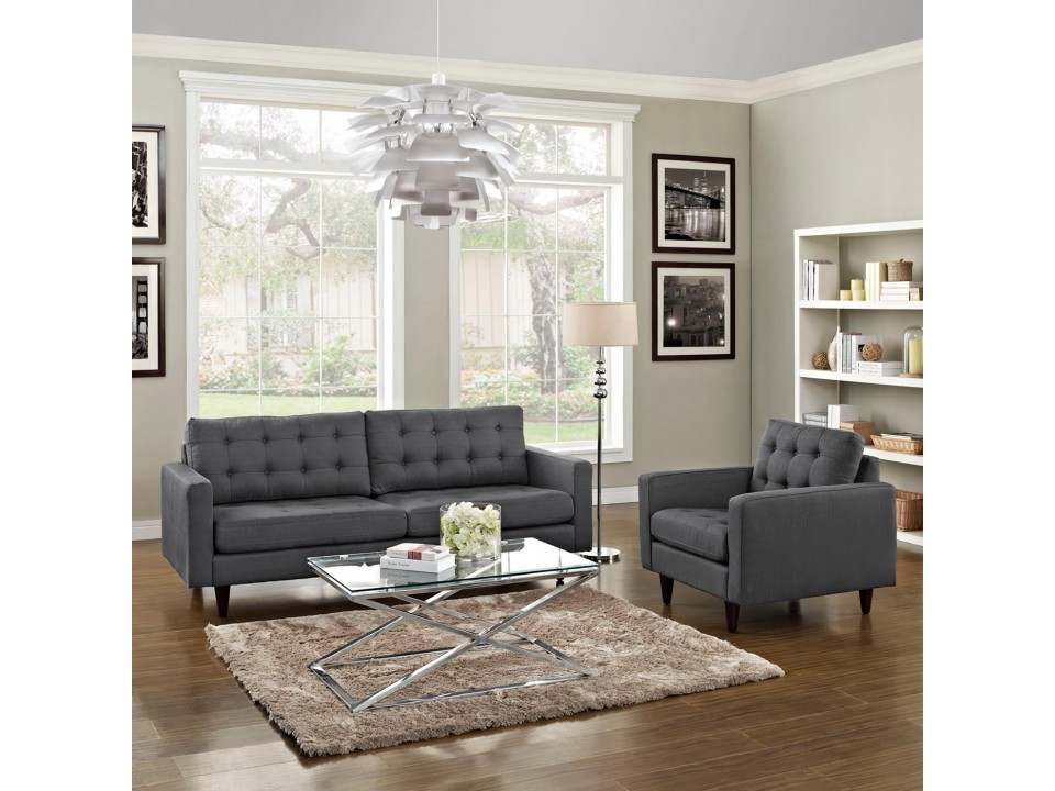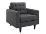 • Tapizado: Exquisitamente tapizado en una elegante tela potro color plomo rata, que aporta sofisticación y estilo a cualquier espacio.