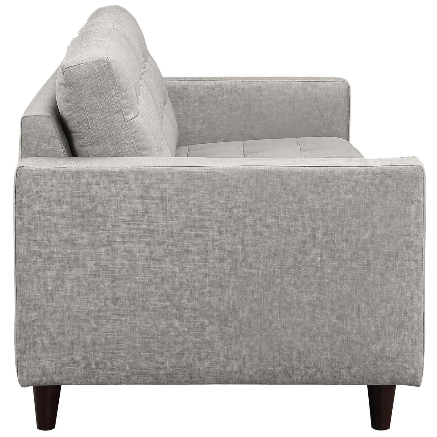 • Tapizado: Exquisitamente tapizado en una elegante tela potro color beige oscuro, que aporta sofisticación y estilo a cualquier espacio.