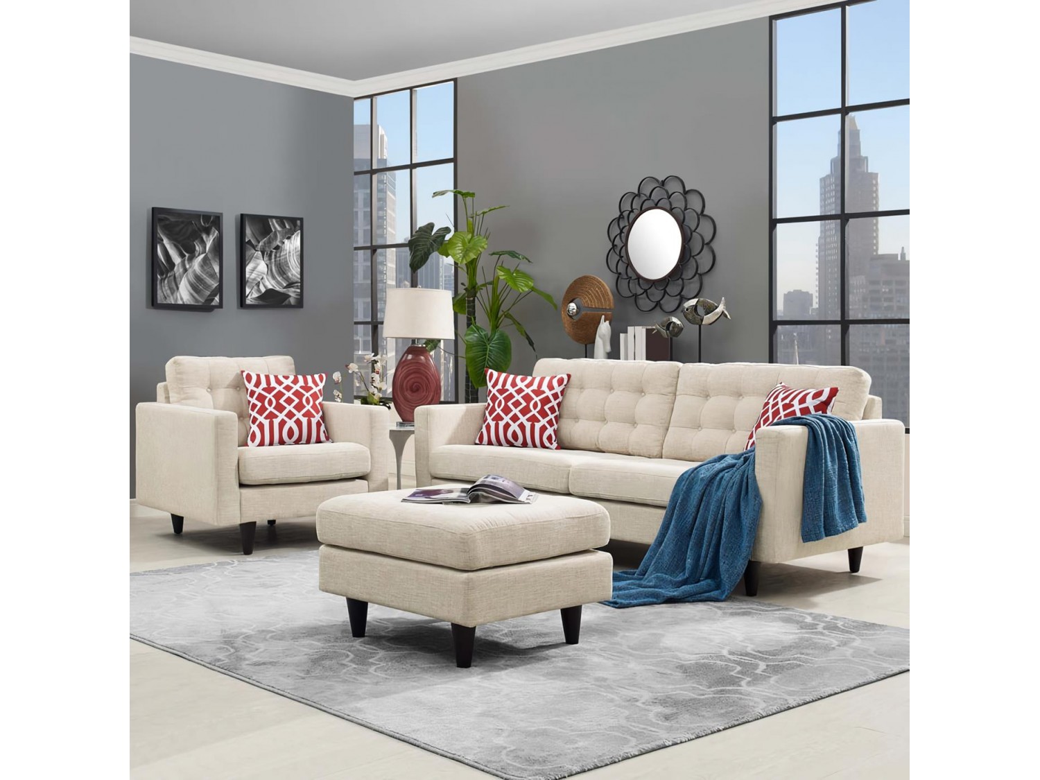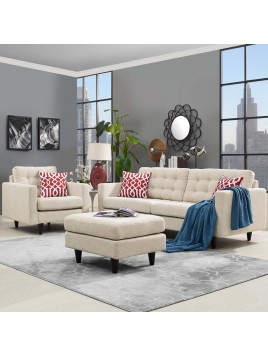 Juego de sala Milan Ivory 3+1 en tela Potro con 4 cojines