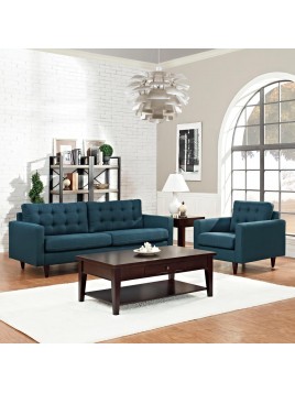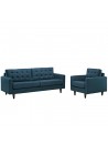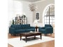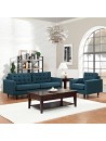 Juego de sala Milan Azul Acero 3+1 en tela Potro con 4 cojines