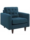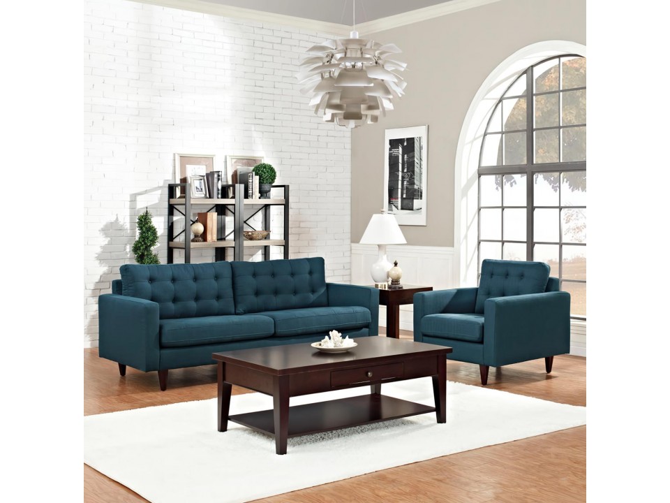 • Tapizado: Exquisitamente tapizado en una elegante tela potro color azul acero, que aporta sofisticación y estilo a cualquier espacio.