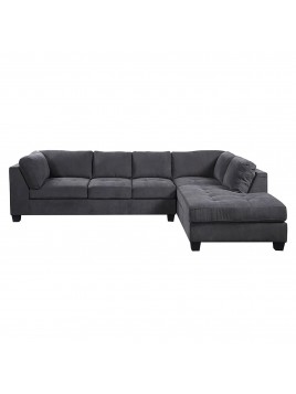 Sofá Seccional Pirlo Derecho en L con Chaise Longue Tela Vasco Gris Oscuro