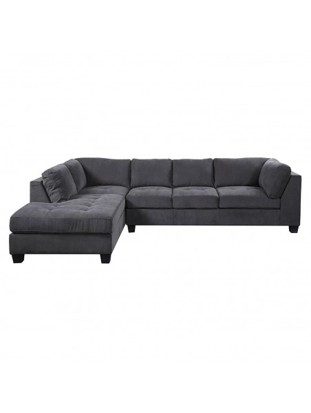 Sofá Seccional Pirlo Izquierdo en L con Chaise Longue Tela Vasco Gris Oscuro