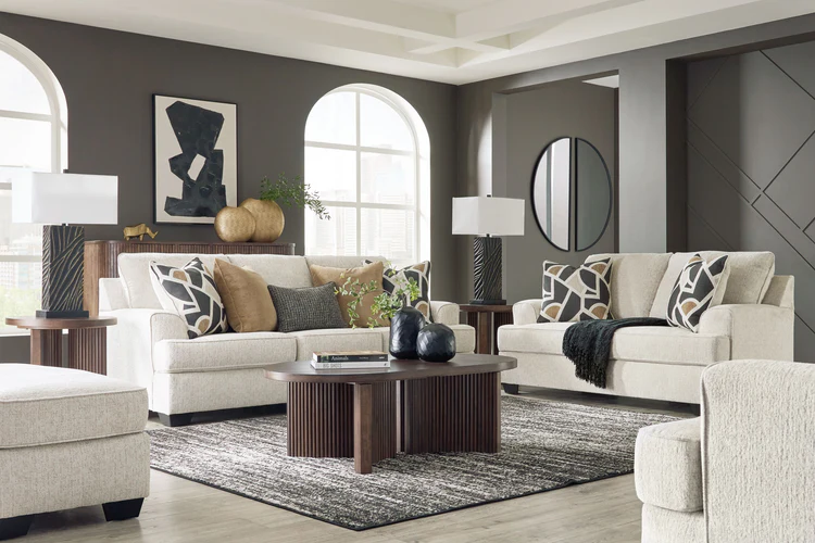 Sala Alessandro 3-2-1 con banqueta en tela chenille
