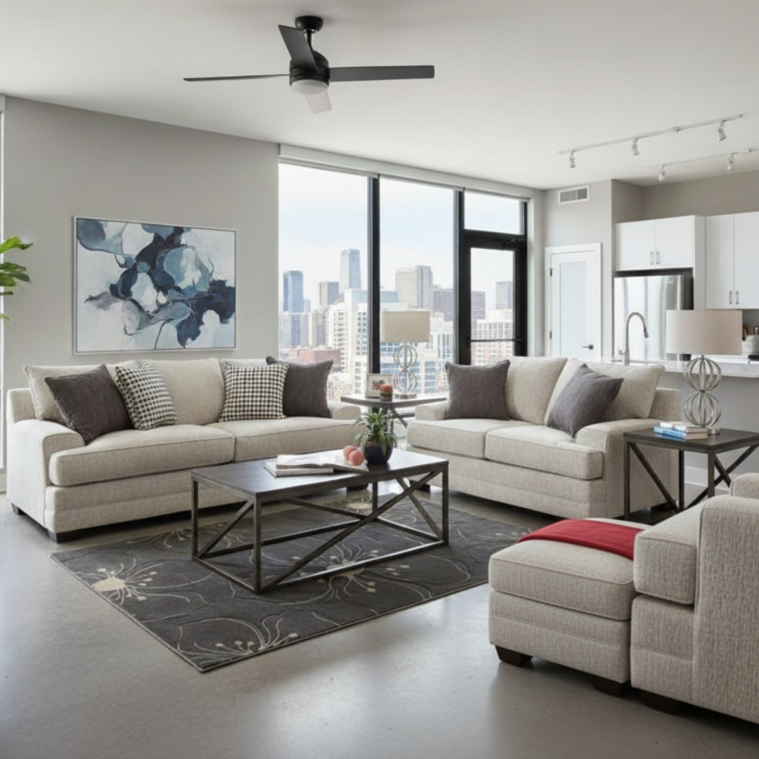 Sala Santi 3-2-1 con banqueta en tela chenille