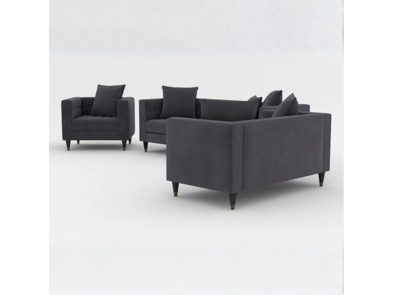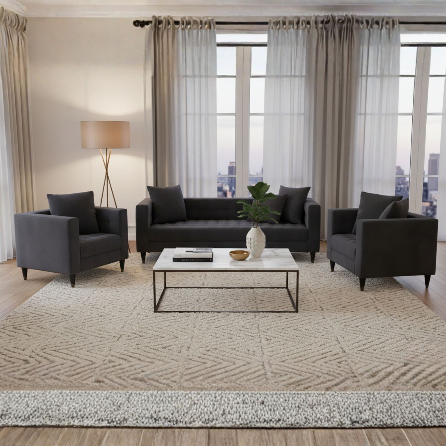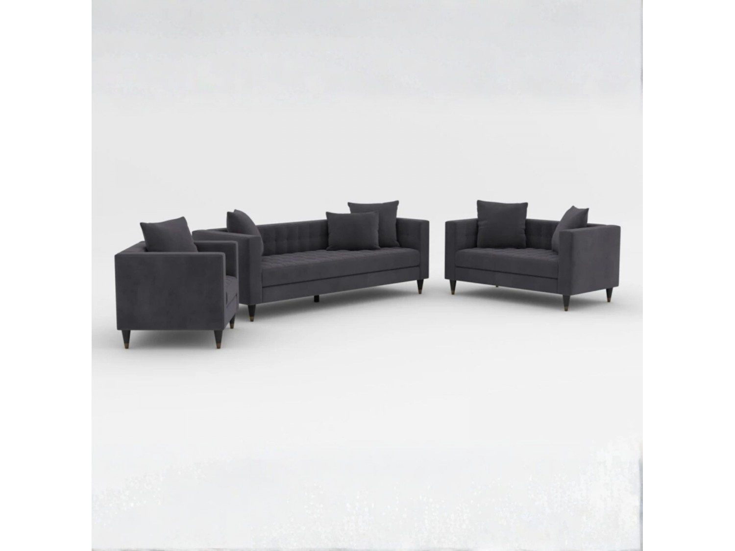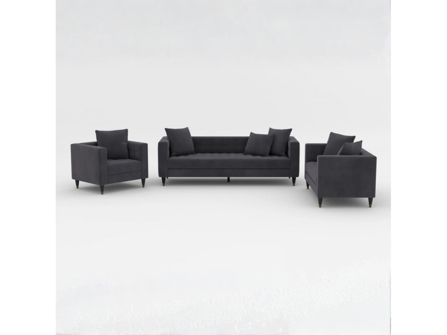 Su estructura está fabricada con madera tornillo seca al horno, garantizando firmeza y larga vida útil. Cada pieza del set —sofá de 3 plazas, 2 plazas y 1 plaza— cuenta con espuma de alta densidad que brinda soporte y comodidad superior. Las patas de madera maciza añaden un toque natural y sofisticado, elevando el estilo de cualquier ambiente.