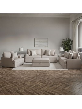 El Juego de Sala Moli 3-2-1 + Banqueta de LMUEBLE.COM es la combinación perfecta entre comodidad, durabilidad y diseño moderno. Su estilo americano se adapta a distintos ambientes, aportando calidez y elegancia.