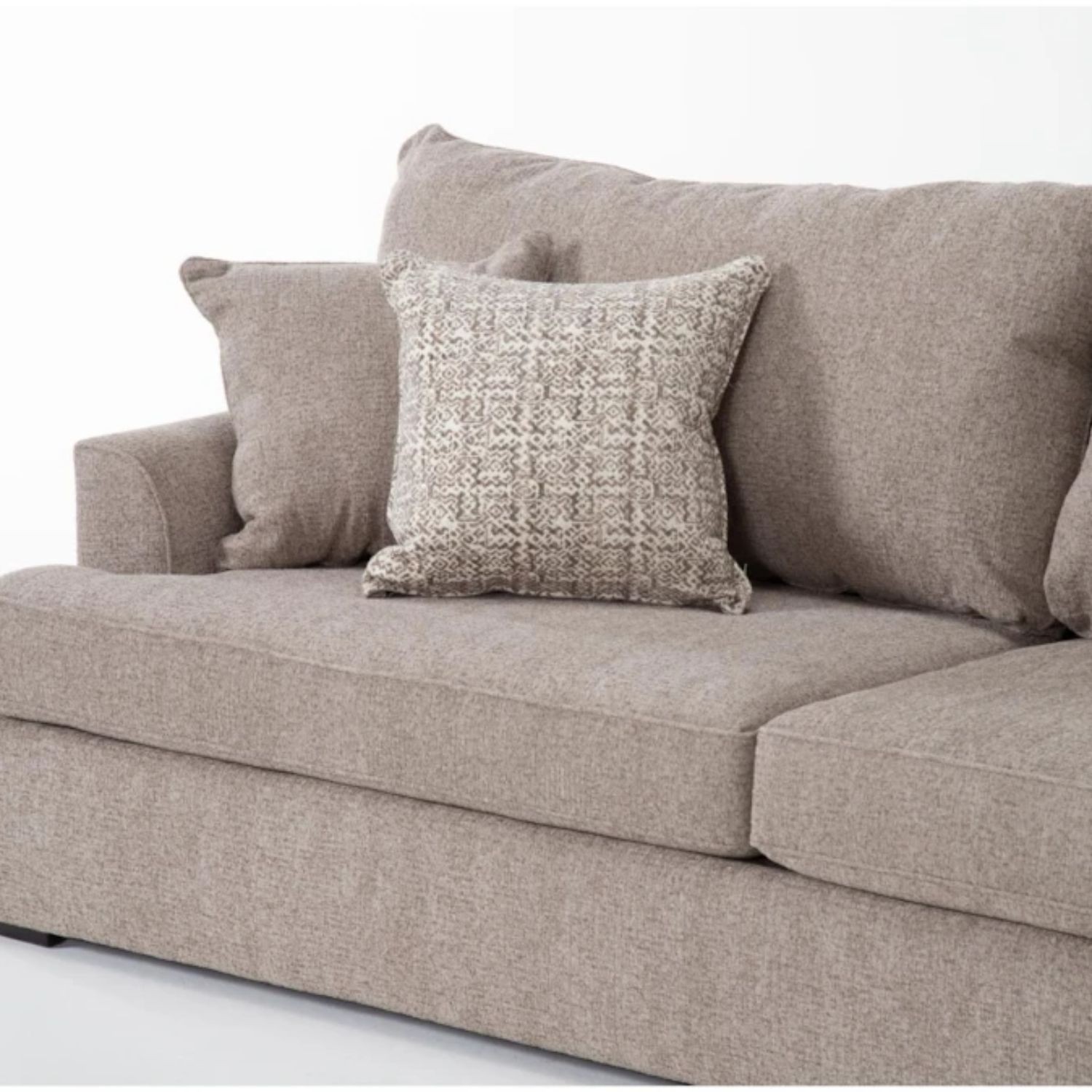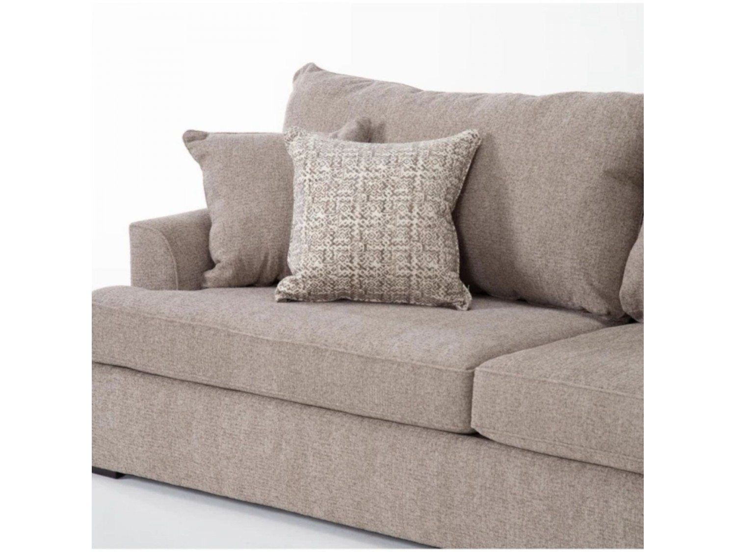 Juego de Sala Moli 3-2-1 + Banqueta, Estilo Americano, Tapizado en Tela Chenille Antifluido, con 6 Cojines Decorativos