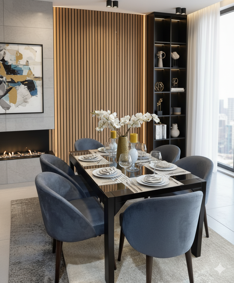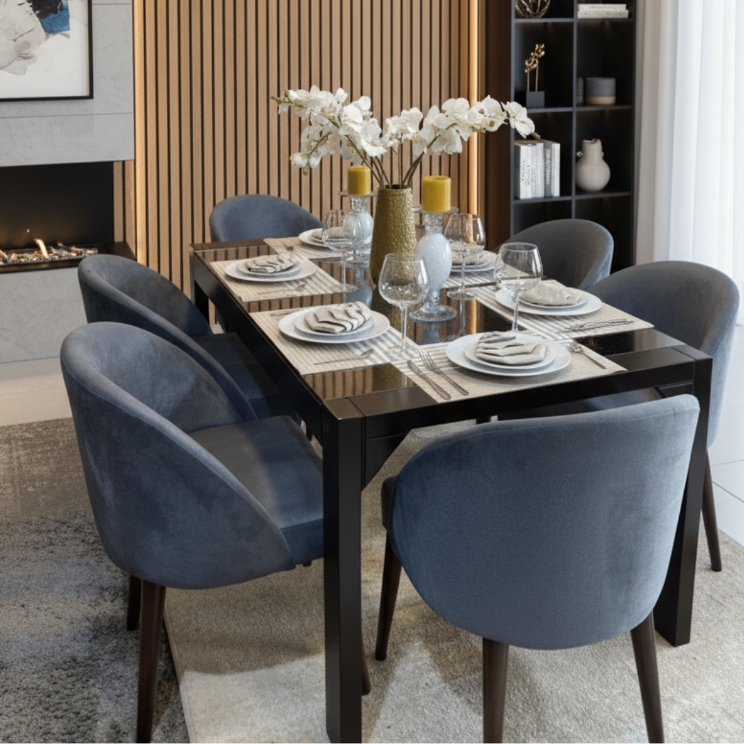 Comedor Riple con 6 Sillas en Madera de Tornillo y Tablero de Vidrio