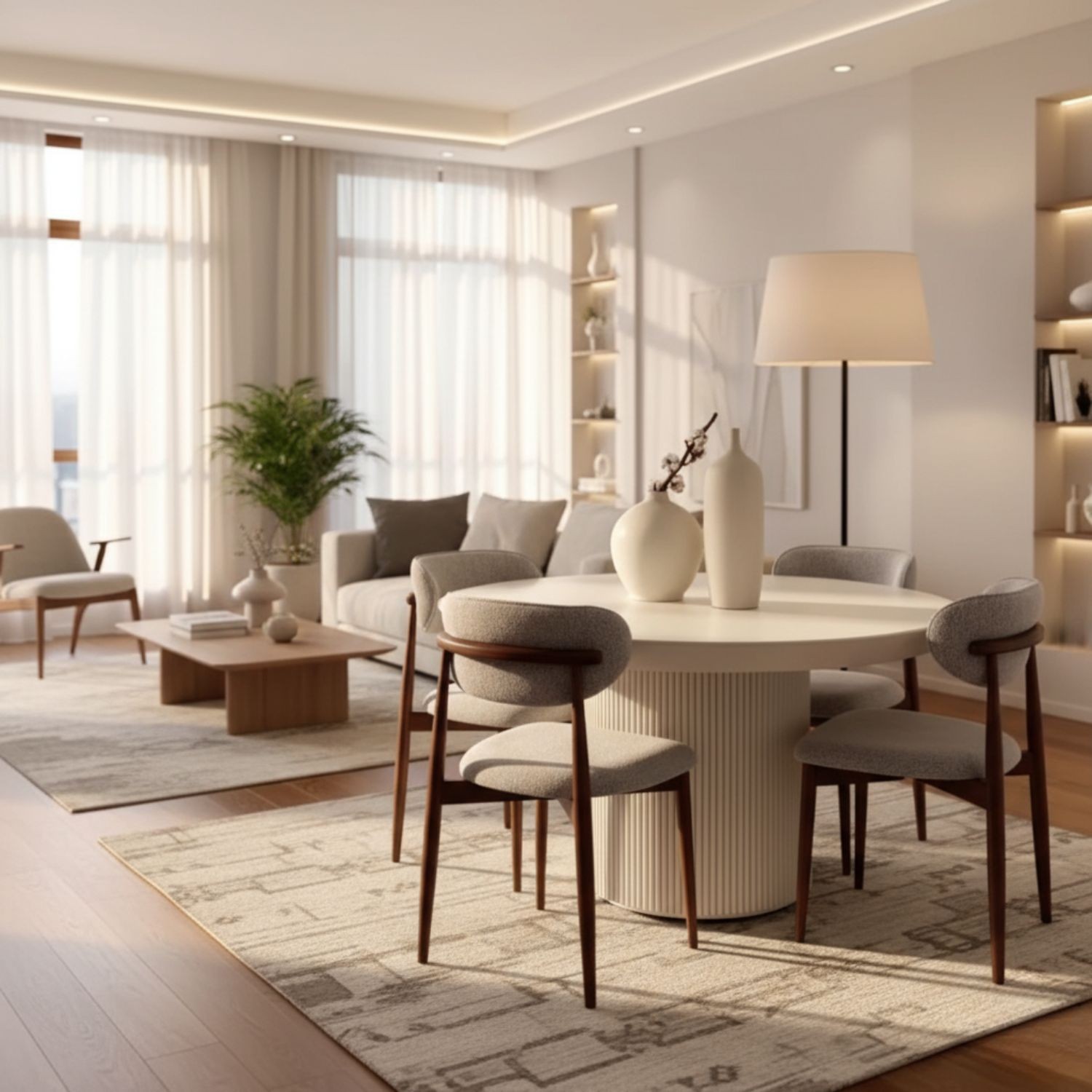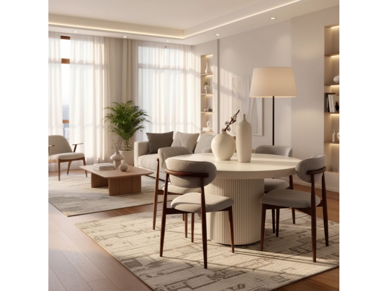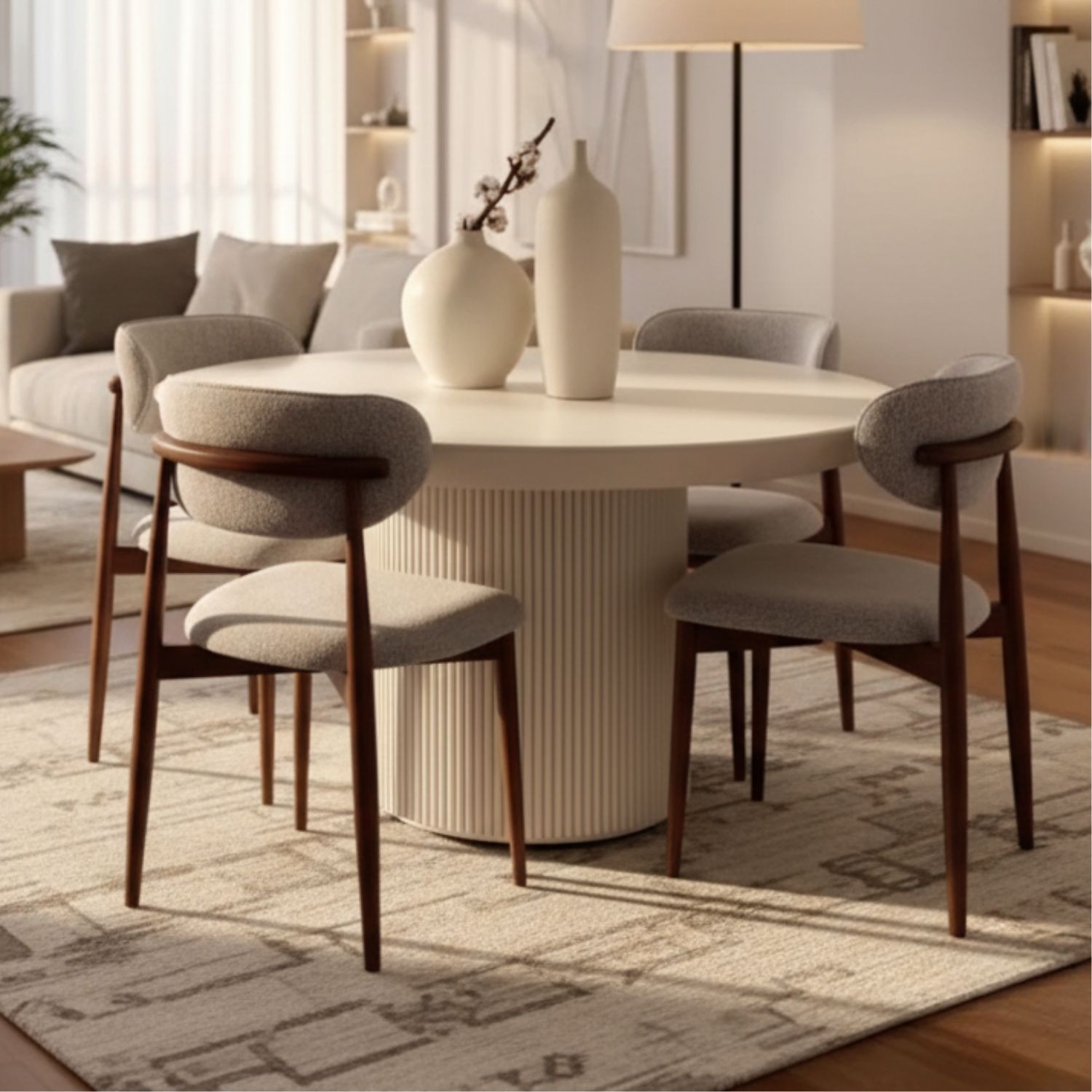 Comedor Circular Luciane de 5 sillas tapizado en tela chenille