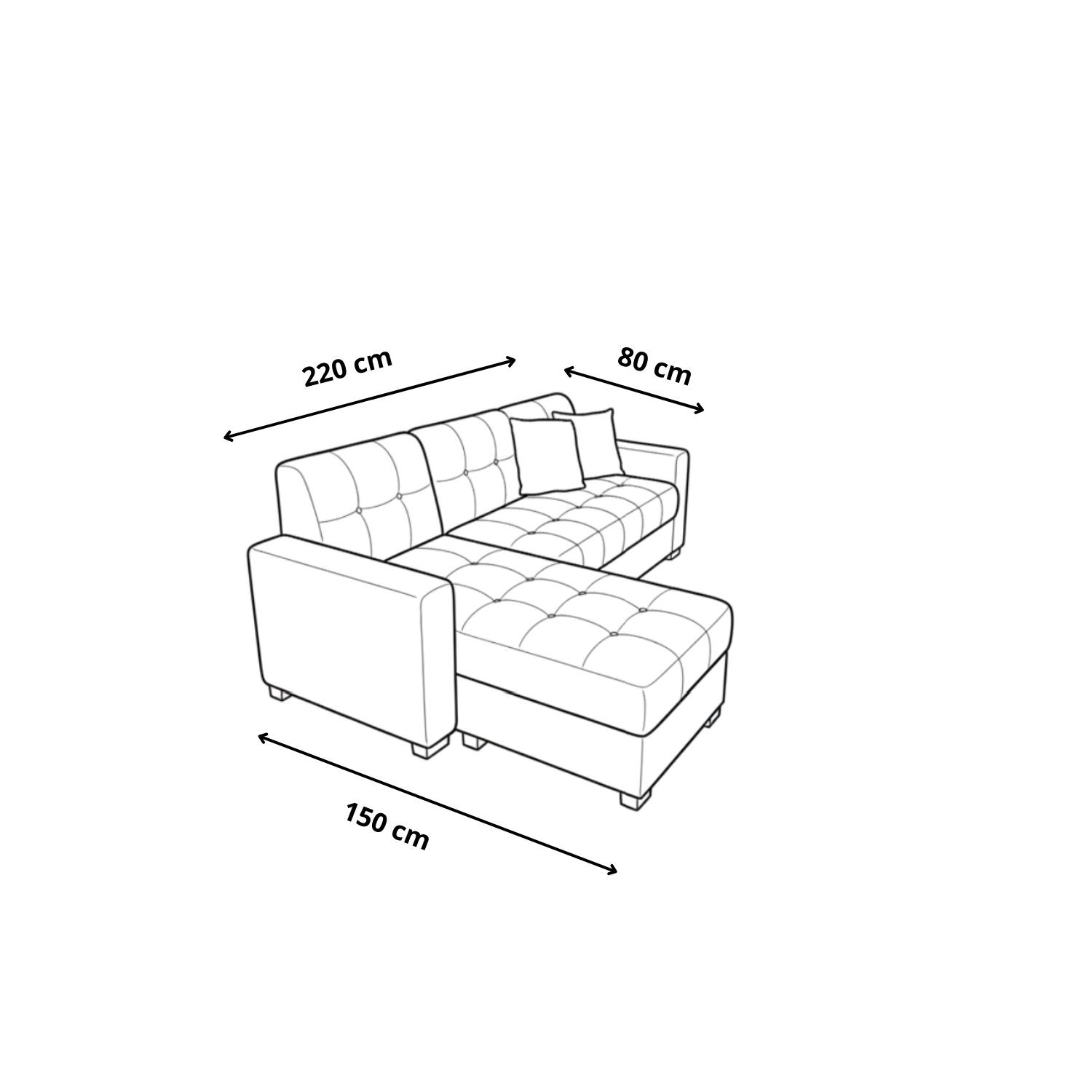 - Dimension seccional: 220 cm largo x 150 cm ancho ( parte L)