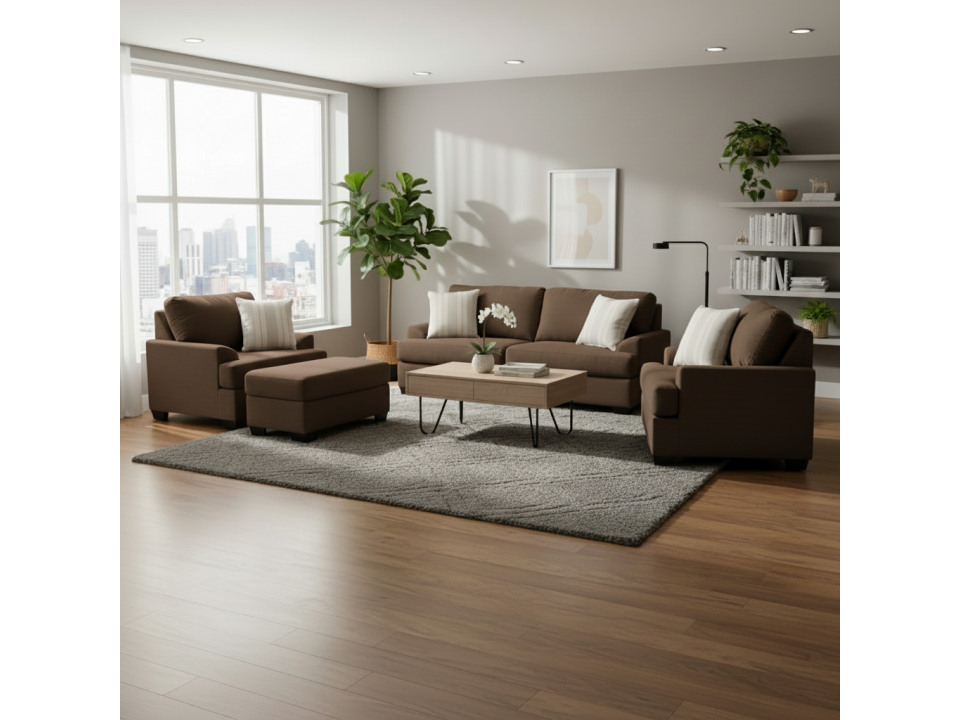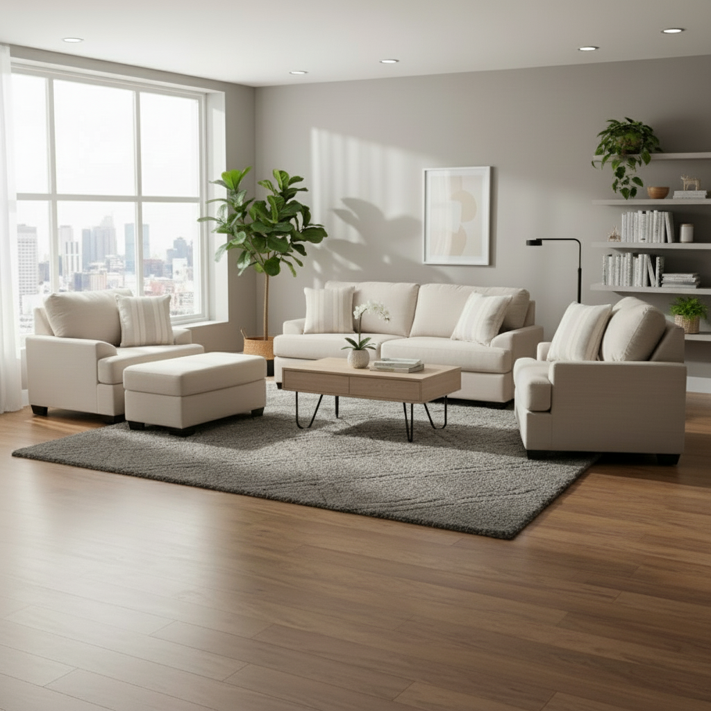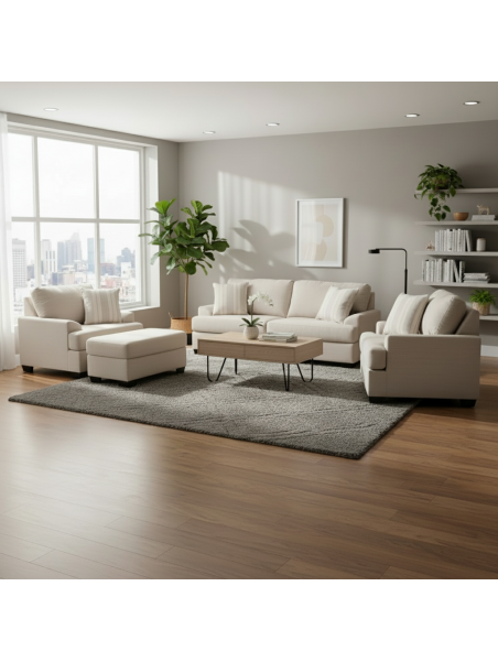 La Sala Malena 3-2-1 con Banqueta de LMUEBLE es una opción moderna y sofisticada pensada para quienes buscan confort, resistencia y diseño elegante en su hogar. Fabricada en Perú con madera tornillo seleccionada, su estructura garantiza estabilidad, firmeza y larga durabilidad.