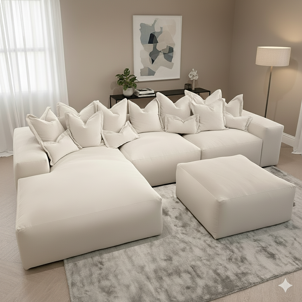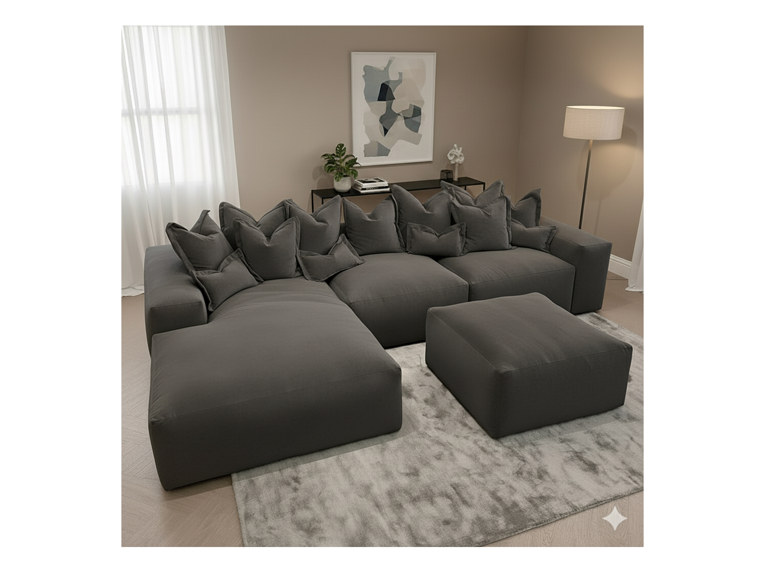Seccional Modular 260x180 cm con Banqueta y 6 Cojines | Tela Chenille Antifluido