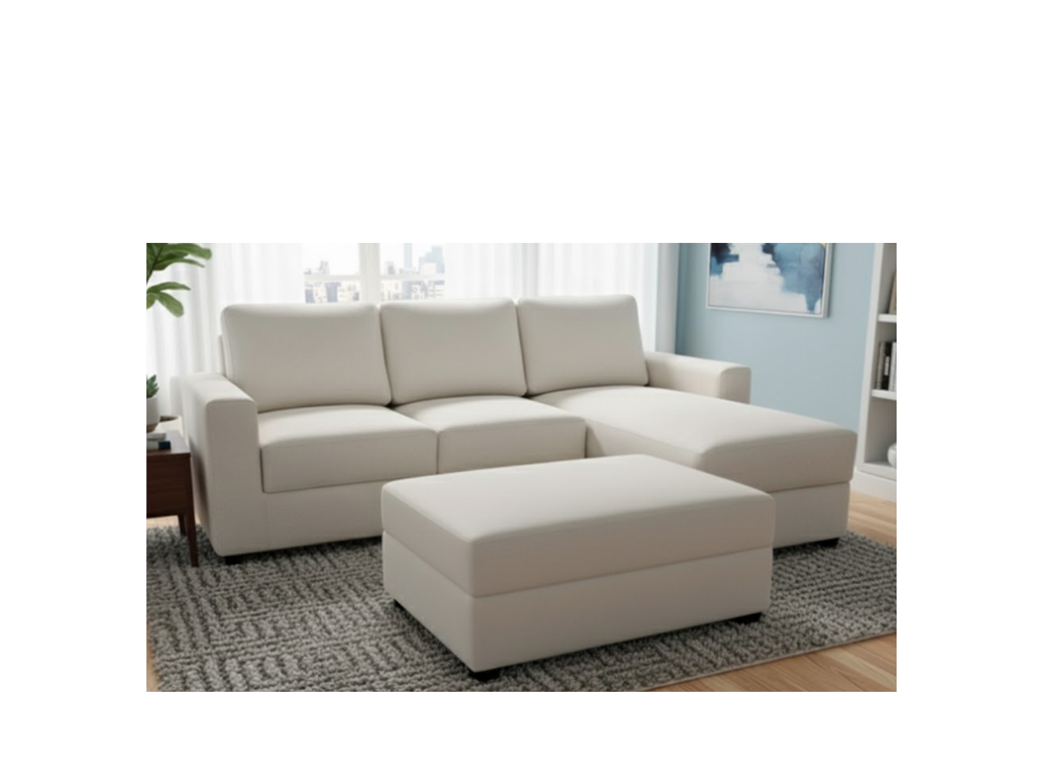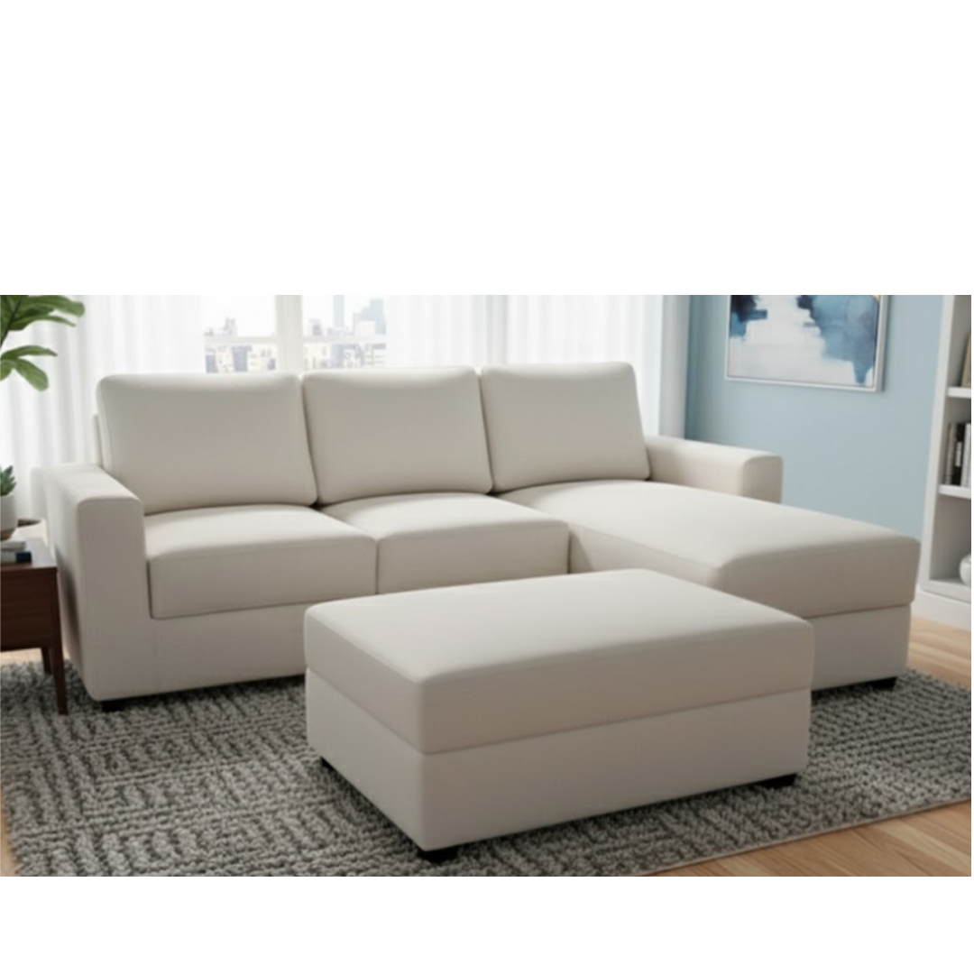 - Dimension seccional: Seccional 195 cm x 150 cm poli con banqueta
