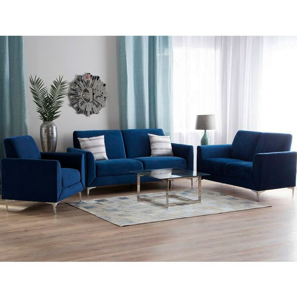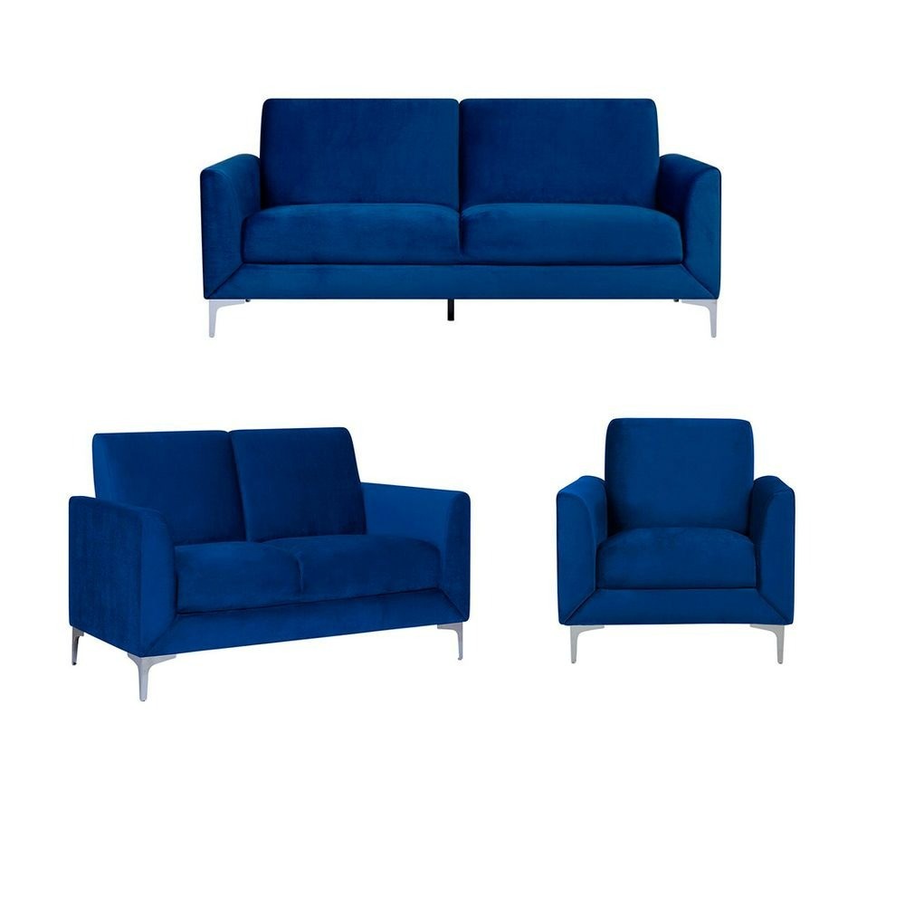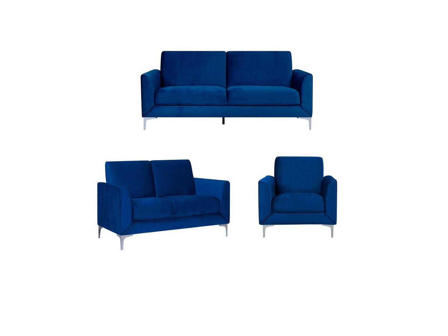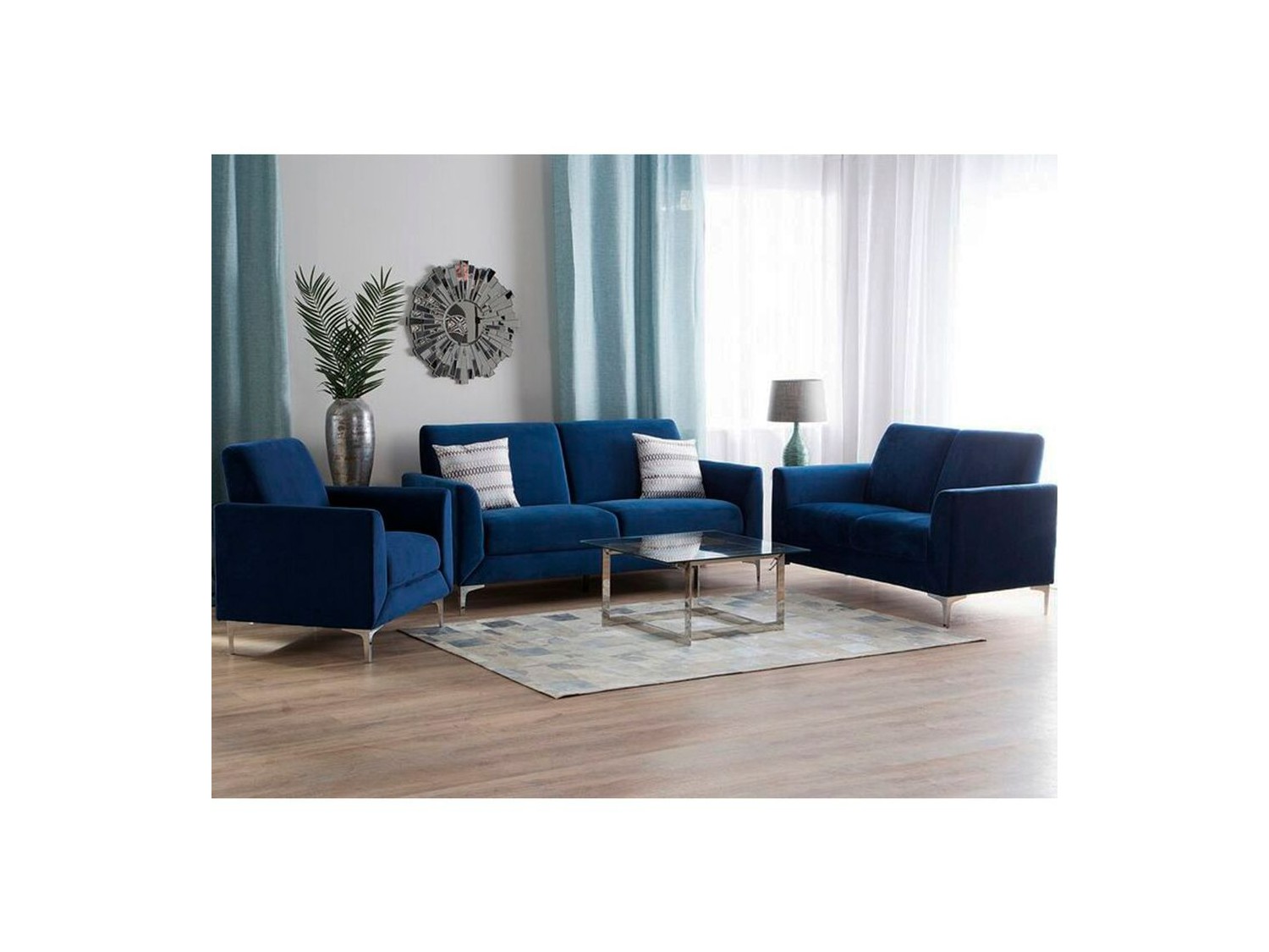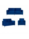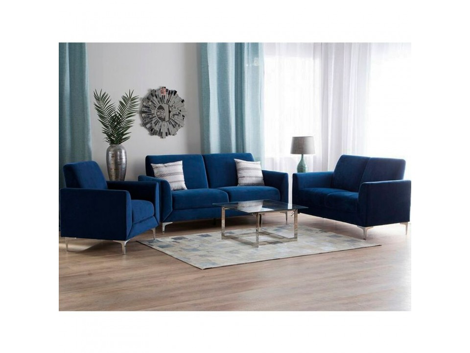 Juego de Sala Alina 3-2-1 con 6 Cojines Decorativos en Tela Vasco Azul