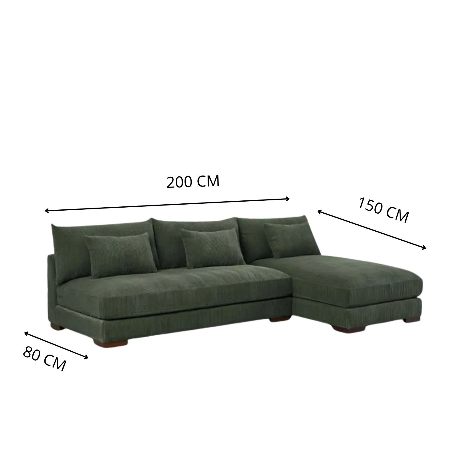 Medidas: 200 cm largo x 150 cm chaise lounge | Profundidad: 80 cm | Altura: 85 cm