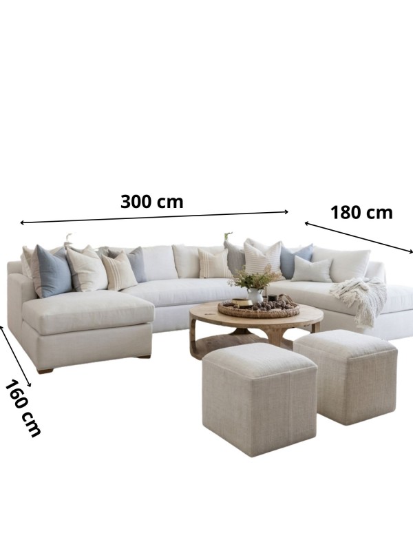 Seccional bali en U con Doble Chaise 300×160×180 cm en Chenille Antifluido – Mueble Moderno y Amplio