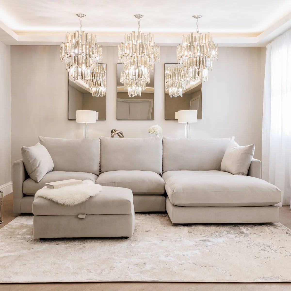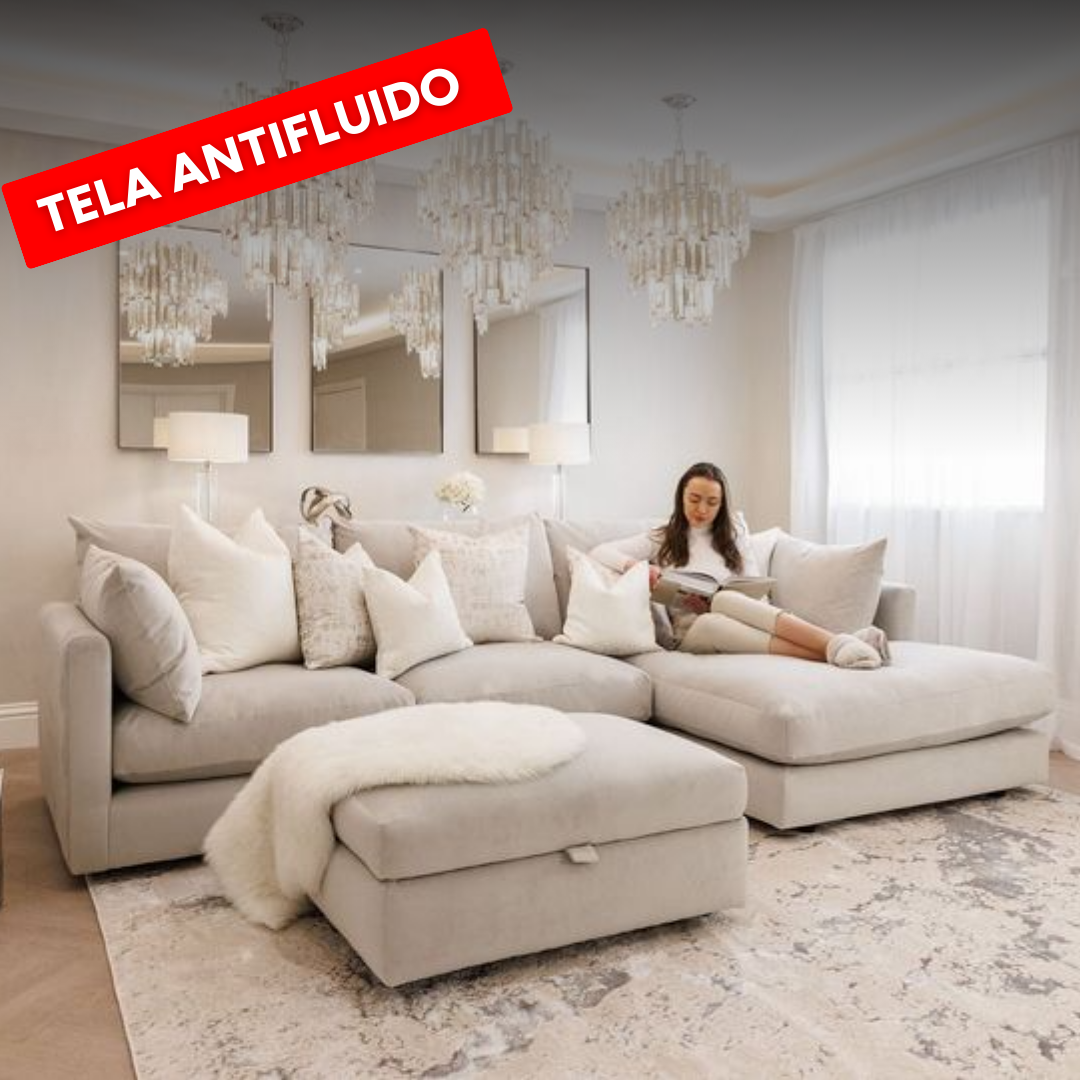 Seccional Kristi con Banqueta + 6 Cojines en chenille Antifluido por cyber