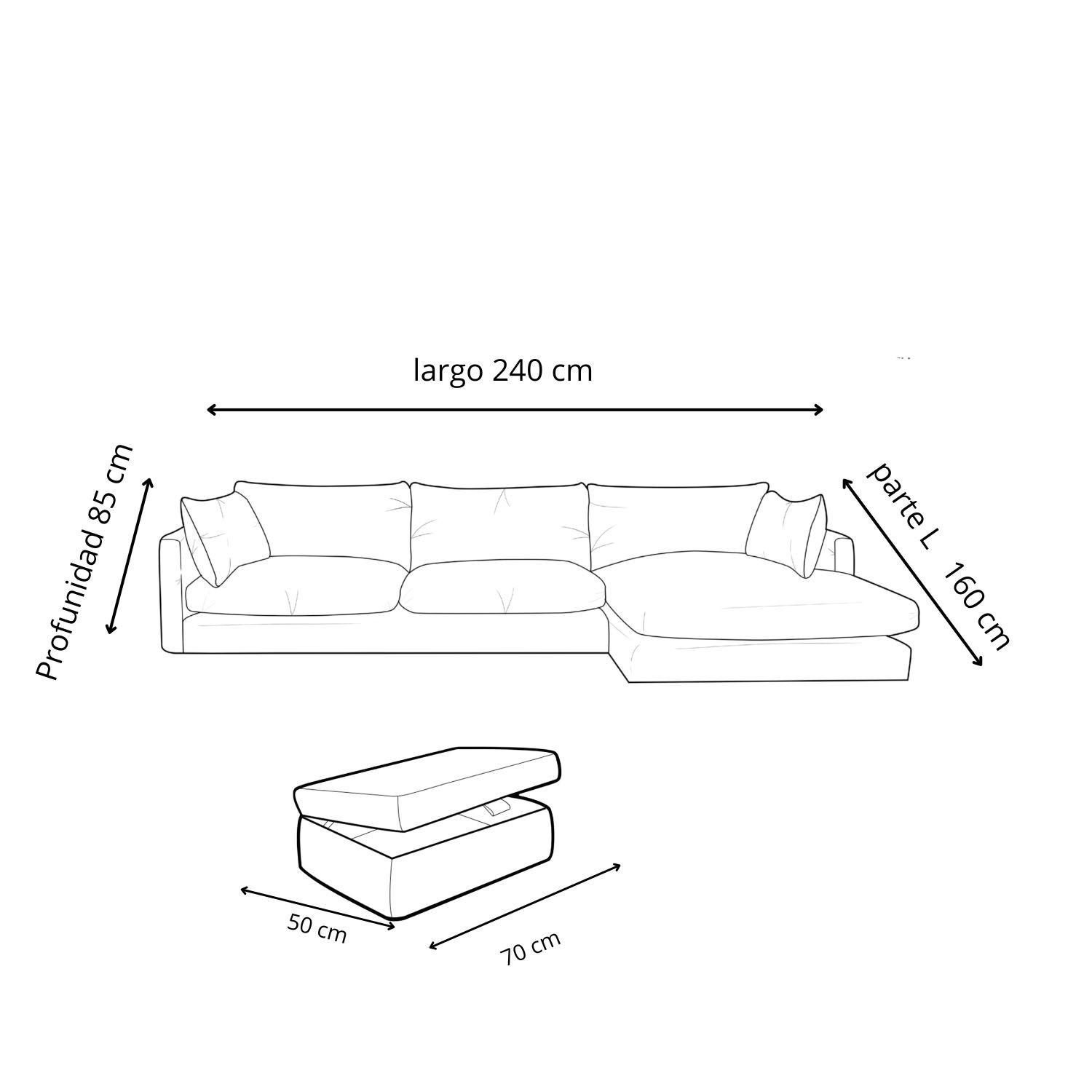 Medidas generales: 240 cm x 160 cm | Profundidad: 85 cm