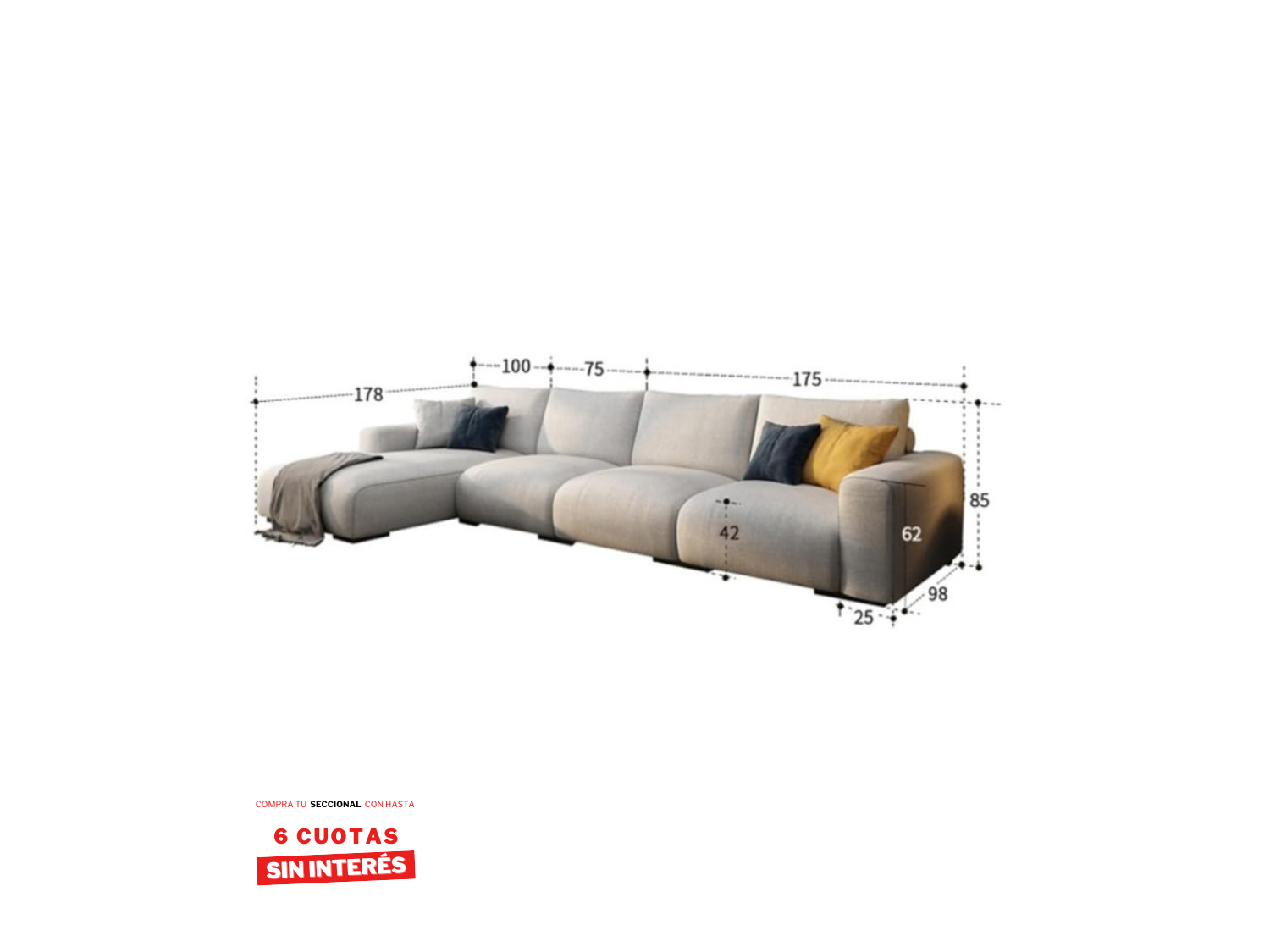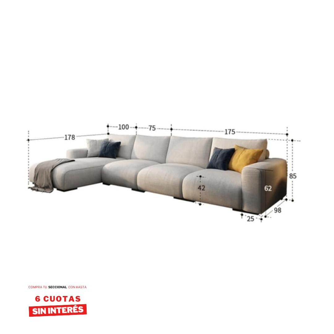 Seccional modular Letty de 4 piezas en tela lino antifluido